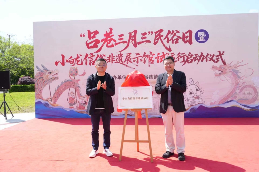 巡游结束后,“小白龙信俗”非遗展示馆试运行启动仪式在吕巷镇社区党群服务中心举行。揭牌、点睛、小朋友暖场龙舞、镇舞龙队《龙腾盛世》演出、舞龙体验等环节精彩纷呈。新馆内,嘉宾与游客驻足于展陈前,欣赏着历史沧桑的发展演变和形式多样的舞龙龙具,感受这项国家级非遗的数百年脉络。参加活动的游客感慨道:“以前只在书本上见过‘小白龙’,今天亲眼看到舞龙队伍穿过老街石桥,体验期间孩子们舞着龙笑成一团,那种朝气蓬勃的感觉,让人觉得文化真的活着。”